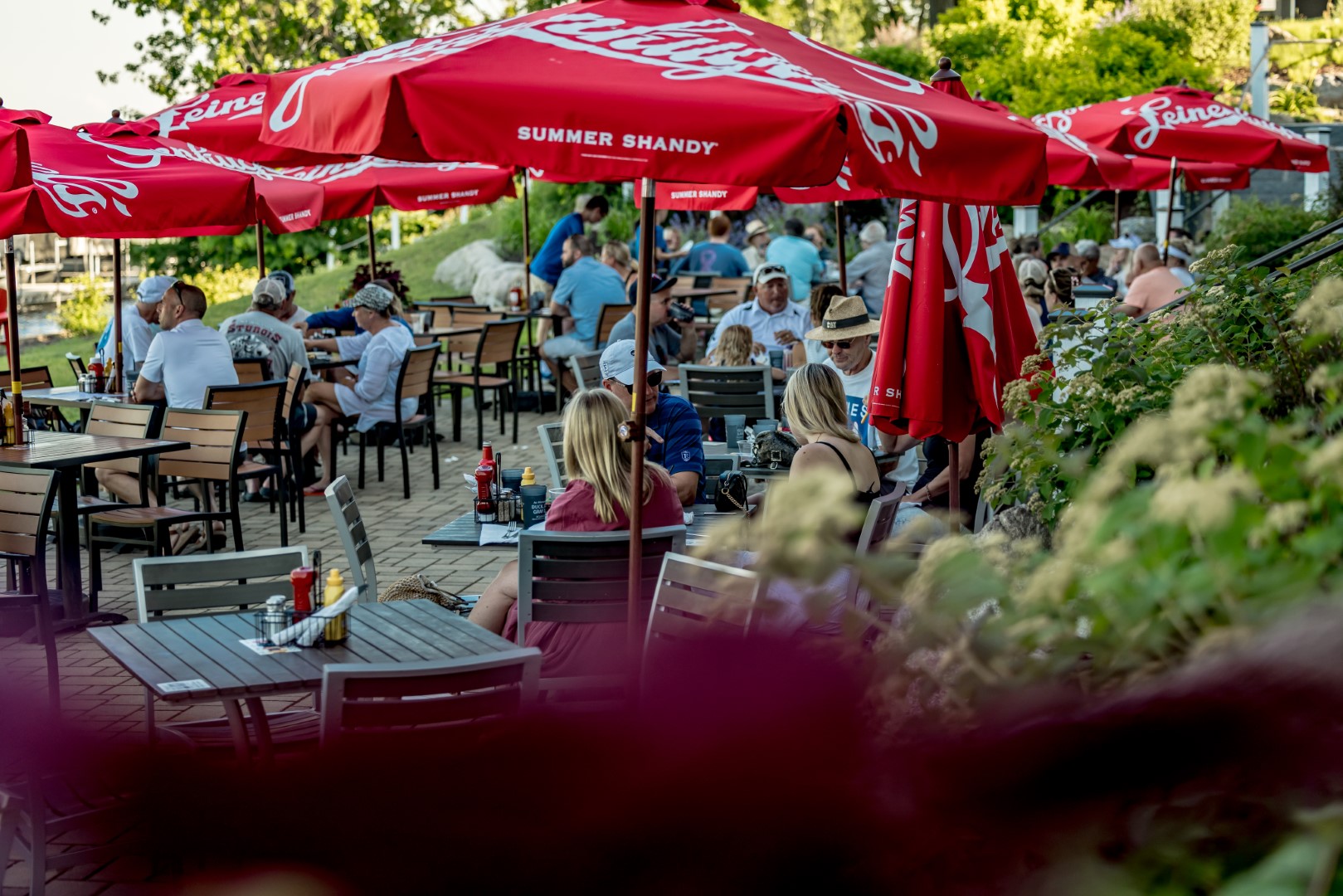 Relax in our cozy lawn chairs in front of the fire and listen to live music, play bean bag games, or just take in the Gull Lake view.